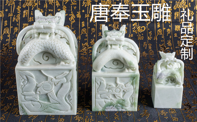 唐奉玉雕高端禮品定制:印章、擺件、餐具、酒具、茶具 、紀念章、紀念幣、徽章、胸章、獎杯、獎牌、象棋、枕頭、玉璧、福字、瓦當、紀念盤、平安扣、玉佛、觀音、四季豆、 如意、貔貅、牌子、葫蘆、金枝玉葉、福瓜、節節高、花件、生肖、龍鳳、山水、無事牌、白菜、人物、瑞獸、關公等玉器,可以在禮品上面打上公司的LOGO或圖案。